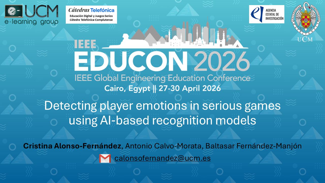 Cristina Alonso-Fernández, Antonio Calvo-Morata, Baltasar Fernández-Manjón (2026): Detecting player emotions in serious games using AI-based recognition models. IEEE Global Engineering Education Conference (EDUCON), 27-30 April, Cairo, Egypt.